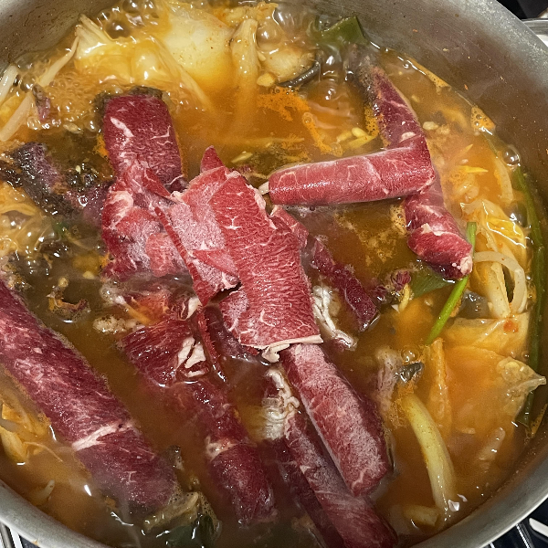 . 야채와 고기를 다 드신 후 칼국수 면을 넣고 약 3~4분간 삶은 후 드시면 됩니다.